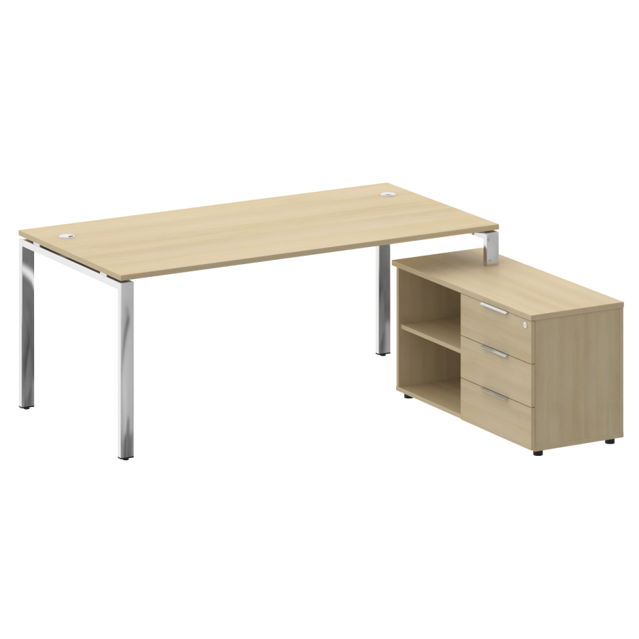 Metal System Direct Стол руковододителя с тумбой правый БГ.СРТ-5.9 (R) Акация/Нерж. сталь 1900*1720*750