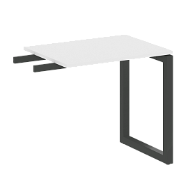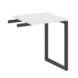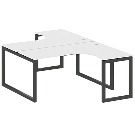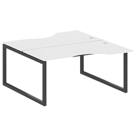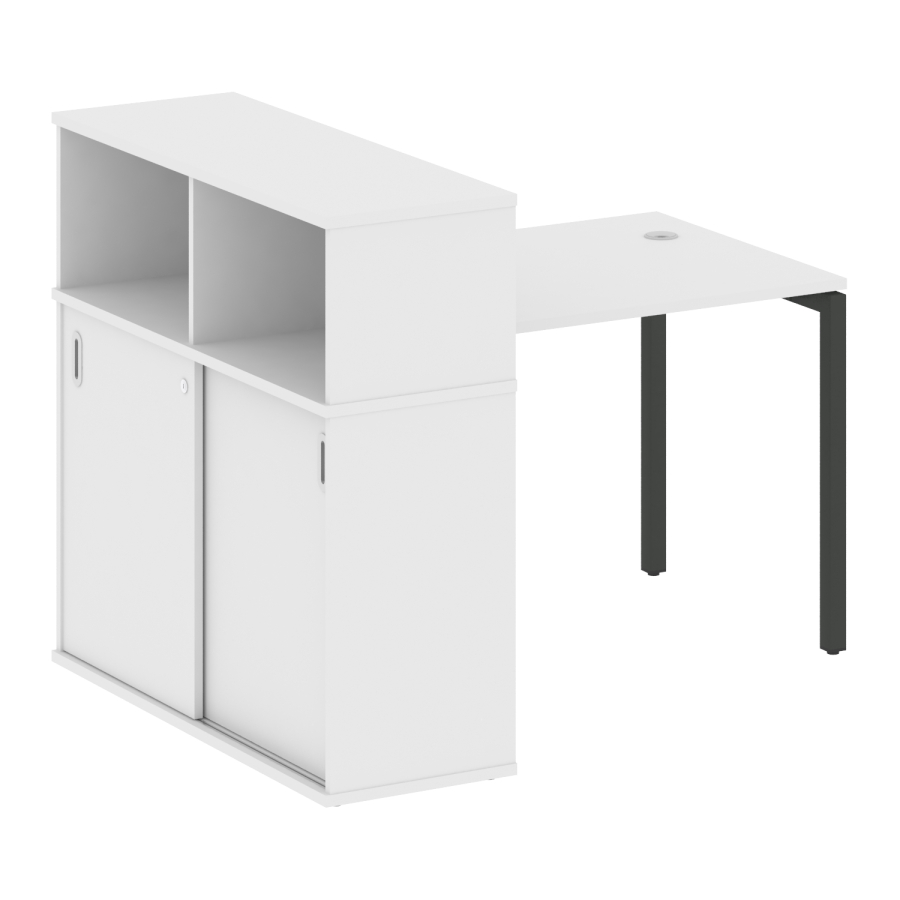 Столешницы имеют отверстия с пластиковыми заглушками кабель-канала серого цвета.