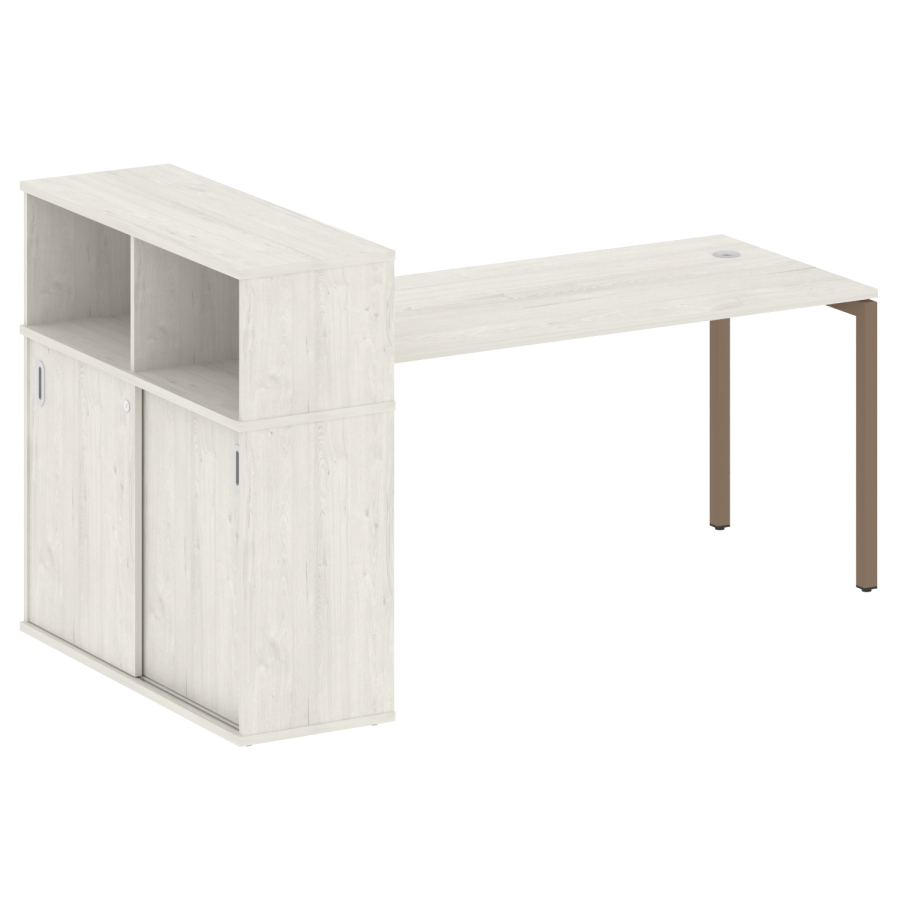 Столешницы имеют отверстия с пластиковыми заглушками кабель-канала серого цвета.