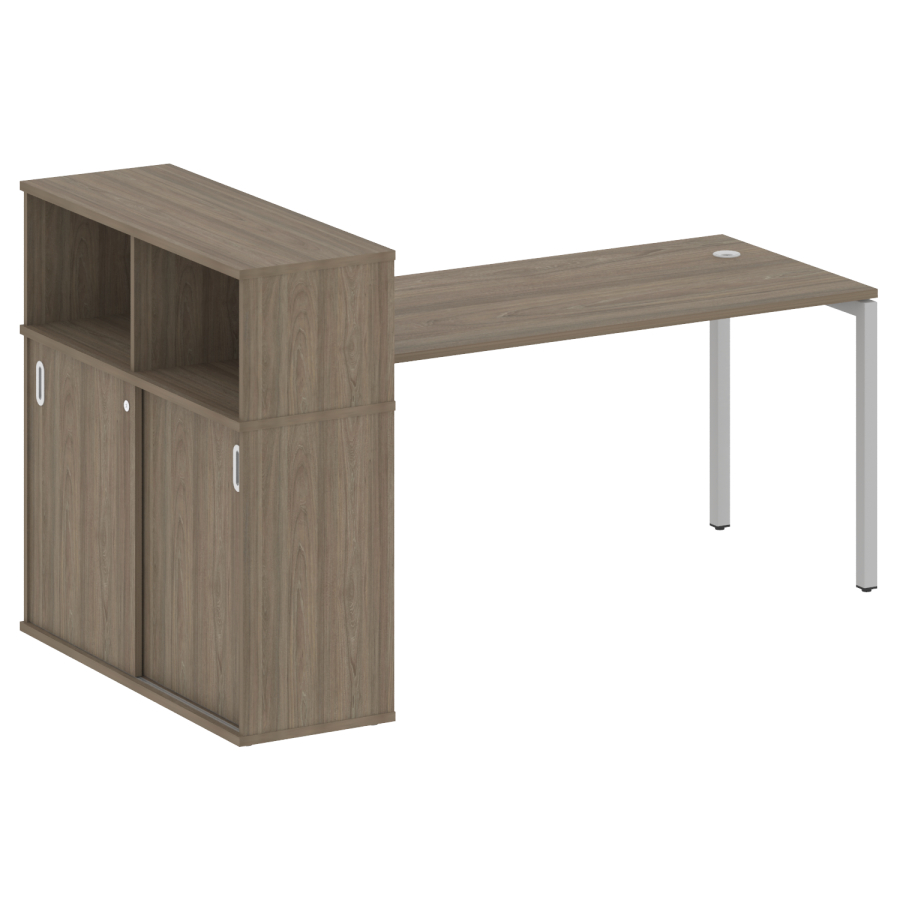 Столешницы имеют отверстия с пластиковыми заглушками кабель-канала серого цвета.
