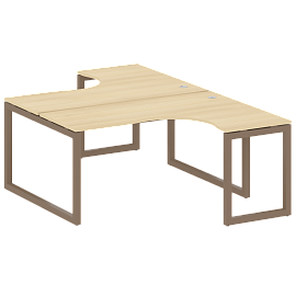 Столешницы имеют отверстия с пластиковыми заглушками кабель-канала серого цвета.