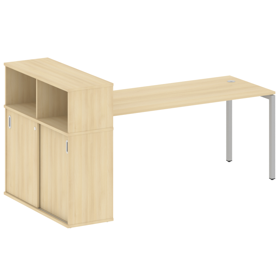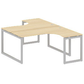 Столешницы имеют отверстия с пластиковыми заглушками кабель-канала серого цвета.