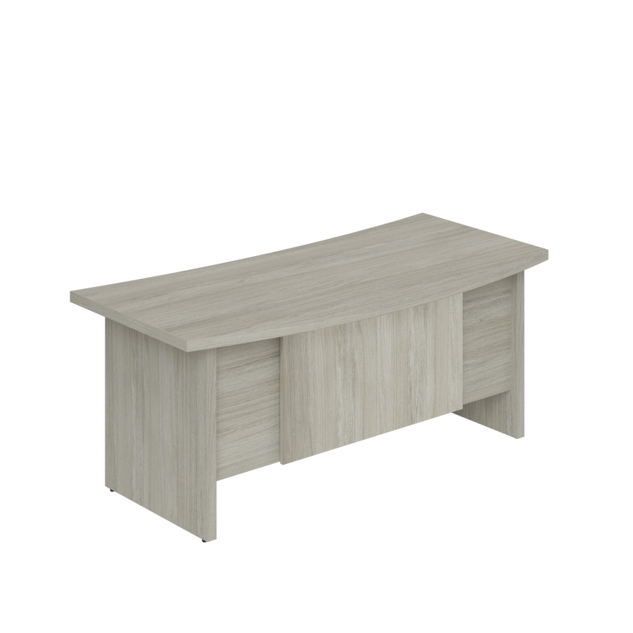 Столешница из ЛДСП 41 мм в форме “крыла” в кромке ПВХ 2 мм. Опоры из ЛДСП 41 мм в кромке ПВХ 2 мм по вертикальным торцам. Передняя панель состоит из двух поверхностей с разнонаправленной текстурой из ЛДСП 16 мм. Видимые вертикальные торцы накладки в кромке ПВХ 2мм.