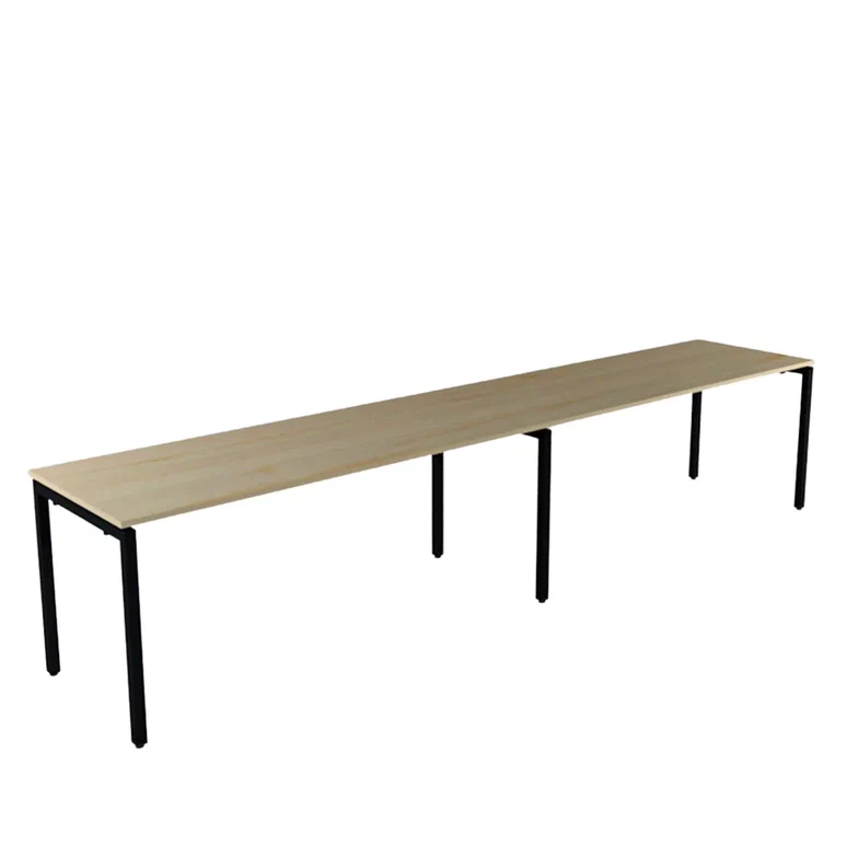Конструкция Каркасной системы «бенч» на 2 рабочих места состоит из двух боковых опор, одной средней опоры и двух комплектов по две траверсы. Опоры выполнены из труб профильного сечения 40*40/60*30 мм, которые сварены между собой «П»-образно (форма буквы «П»). Траверсы выполнены из трубы 20*40мм. Траверсы с опорами соединяются винтами с помощью шестигранника №6. Все детали покрыты порошковой краской.
