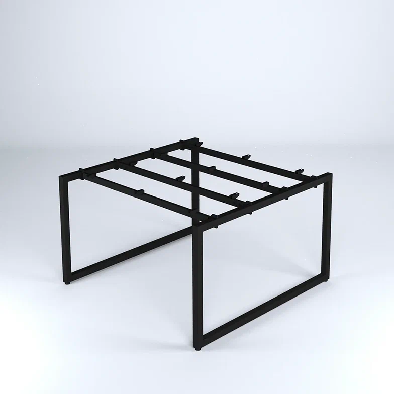 Конструкция Каркасной системы «бенч» на 2 рабочих места состоит из двух боковых опор и двух комплектов по две траверсы. Опоры выполнены из труб профильного сечения 40*40/60*30 мм, которые сварены между собой «О»-образно (форма буквы «О»). Траверсы выполнены из трубы 20*40мм. Траверсы с опорами соединяются винтами с помощью шестигранника №6. Все детали покрыты порошковой краской.