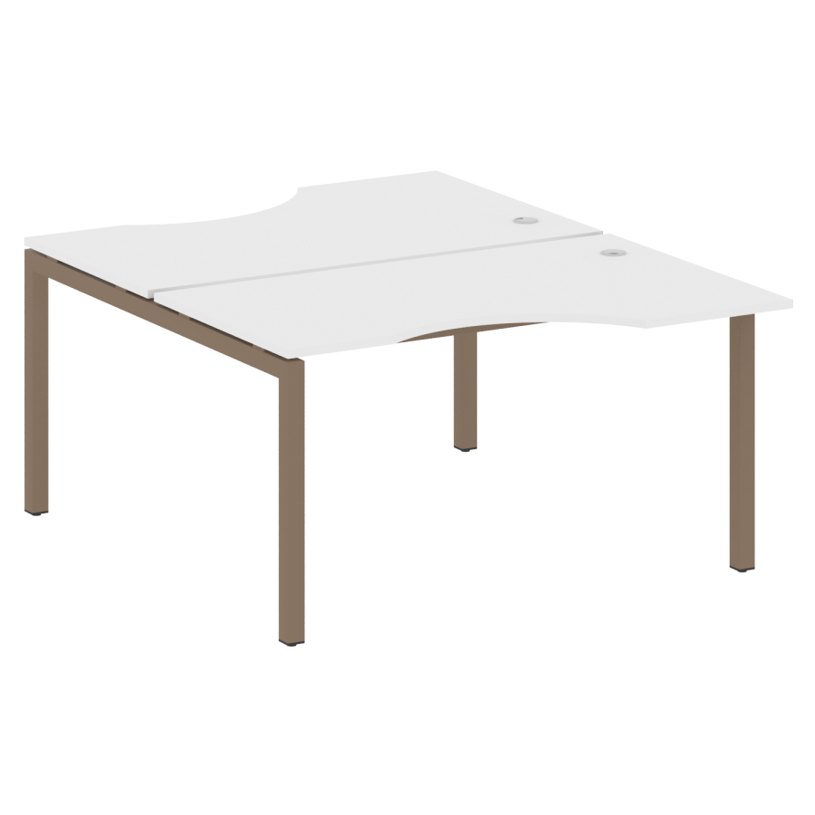 Столешницы имеют отверстия с пластиковыми заглушками кабель-канала серого цвета.