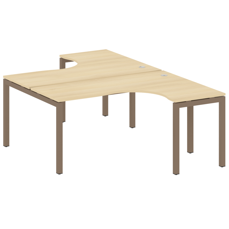 Столешницы имеют отверстия с пластиковыми заглушками кабель-канала серого цвета.