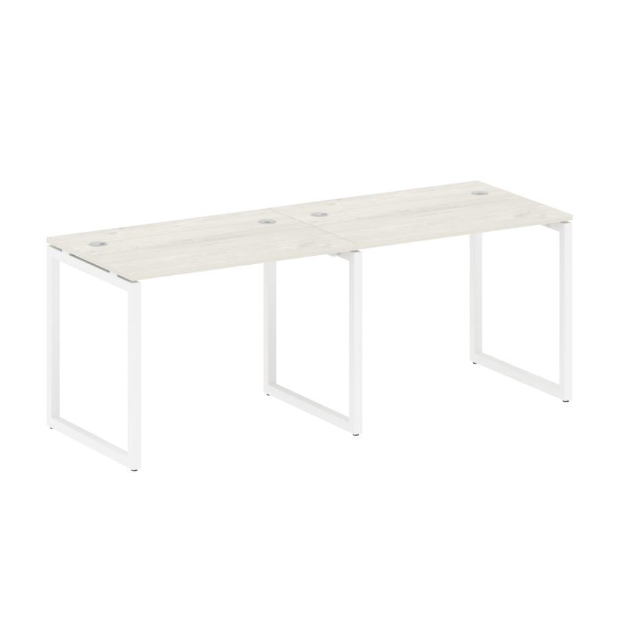 Столешницы имеют отверстия с пластиковыми заглушками кабель-канала серого цвета.