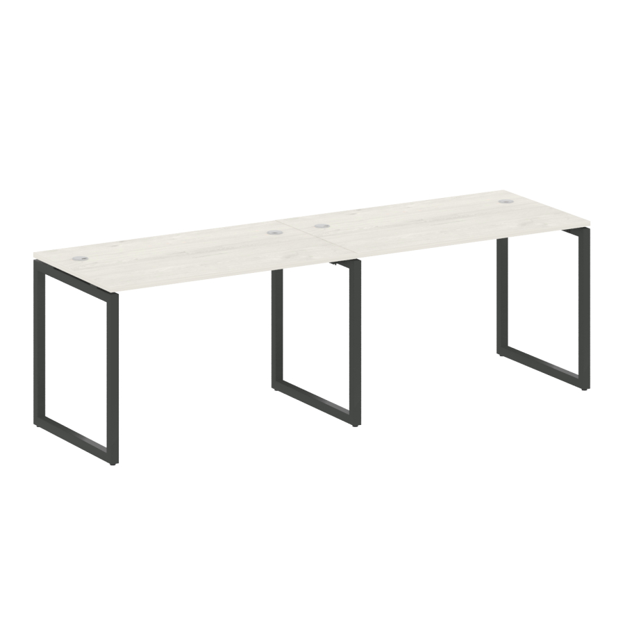 Столешницы имеют отверстия с пластиковыми заглушками кабель-канала серого цвета.