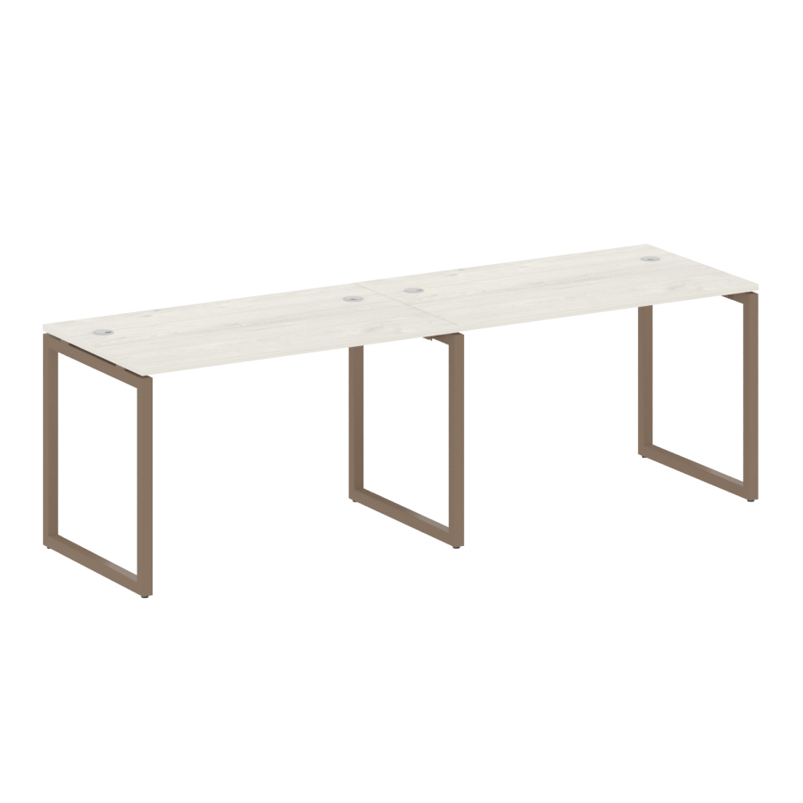 Столешницы имеют отверстия с пластиковыми заглушками кабель-канала серого цвета.