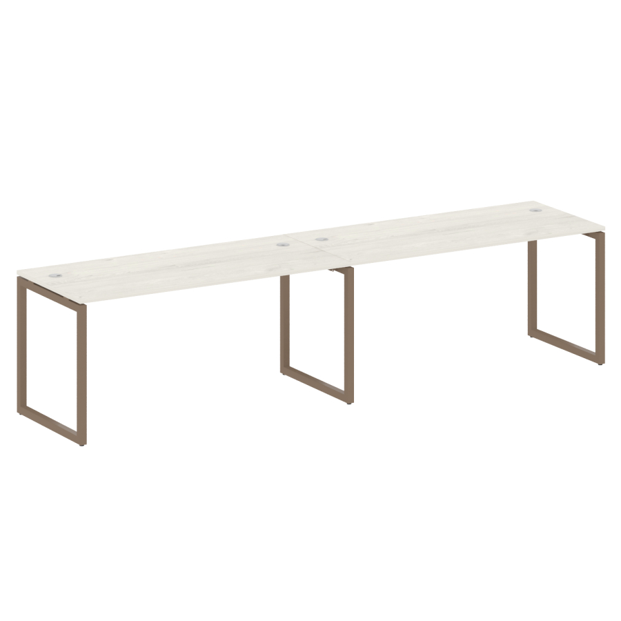 Столешницы имеют отверстия с пластиковыми заглушками кабель-канала серого цвета.