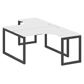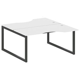 Столешницы имеют отверстия с пластиковыми заглушками кабель-канала серого цвета.