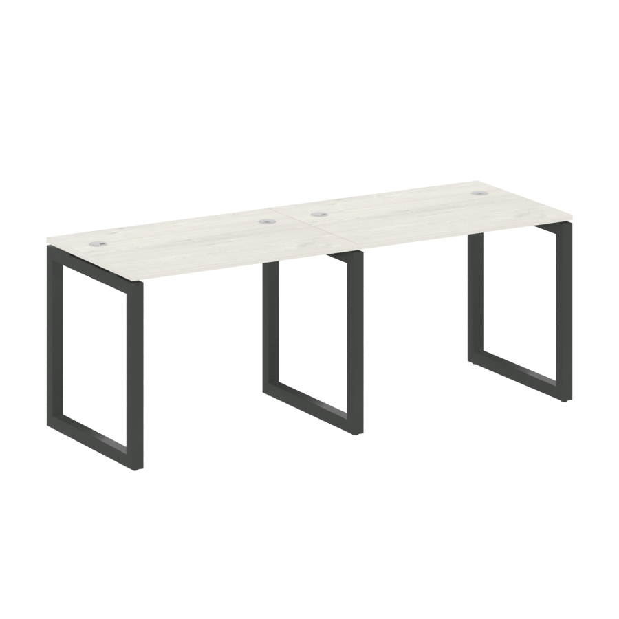 Столешницы имеют отверстия с пластиковыми заглушками кабель-канала серого цвета.