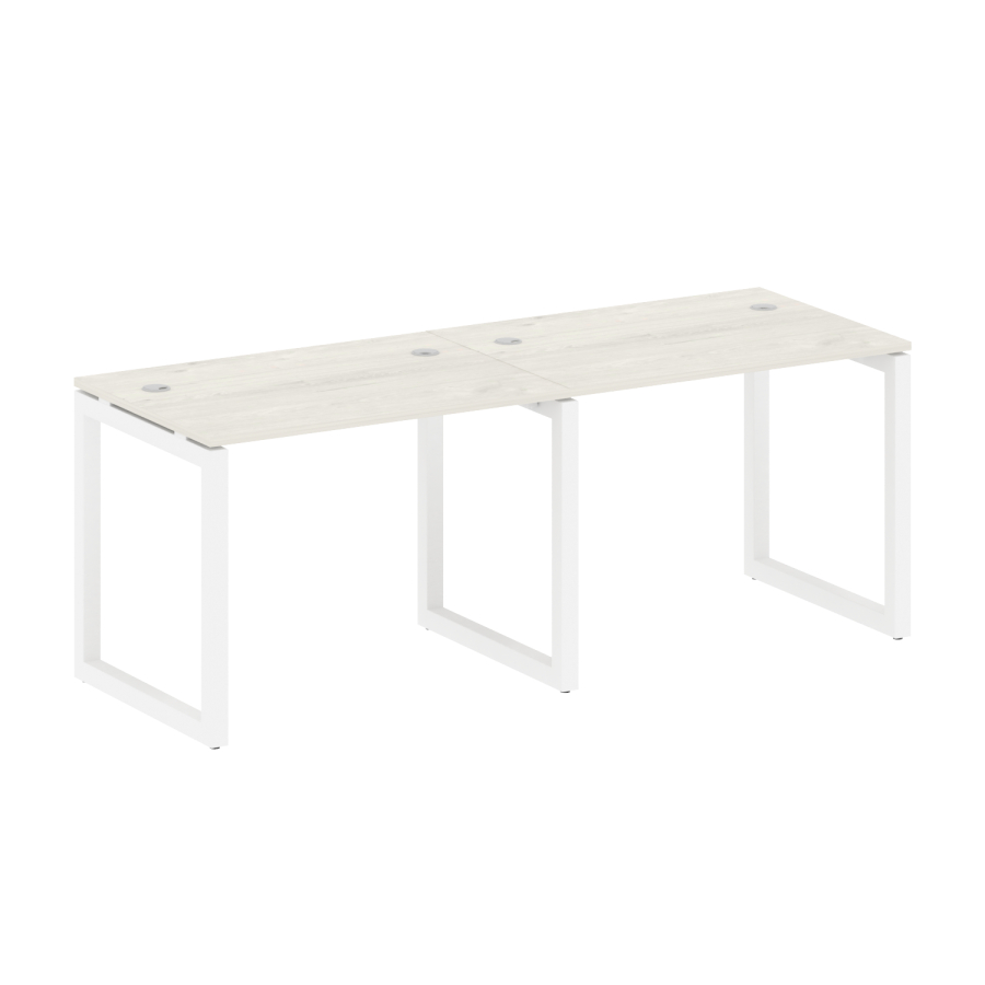 Столешницы имеют отверстия с пластиковыми заглушками кабель-канала серого цвета.