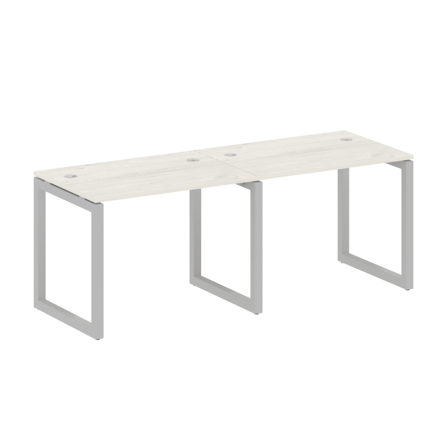 Столешницы имеют отверстия с пластиковыми заглушками кабель-канала серого цвета.