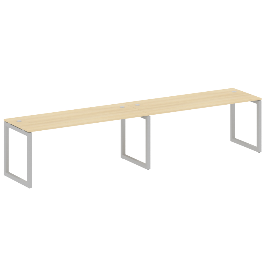 Столешницы имеют отверстия с пластиковыми заглушками кабель-канала серого цвета.