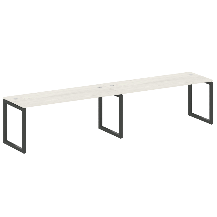 Столешницы имеют отверстия с пластиковыми заглушками кабель-канала серого цвета.