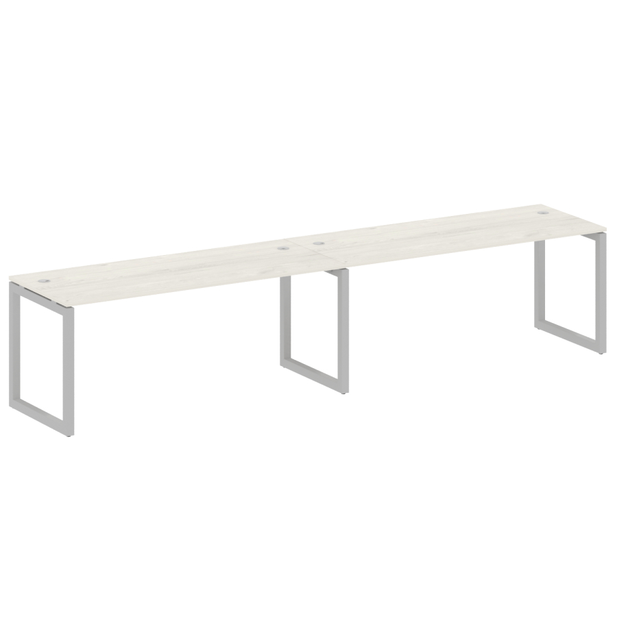 Столешницы имеют отверстия с пластиковыми заглушками кабель-канала серого цвета.