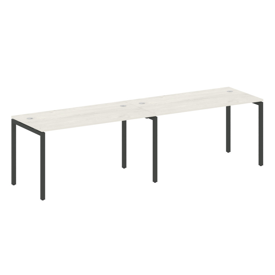 Столешницы имеют отверстия с пластиковыми заглушками кабель-канала серого цвета.