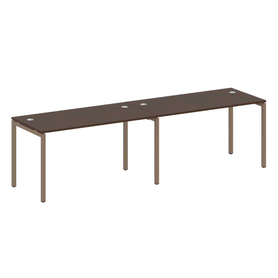 Столешницы имеют отверстия с пластиковыми заглушками кабель-канала серого цвета.
