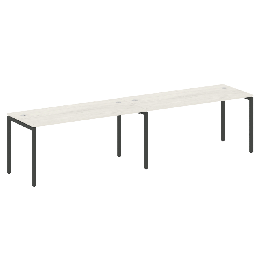 Столешницы имеют отверстия с пластиковыми заглушками кабель-канала серого цвета.