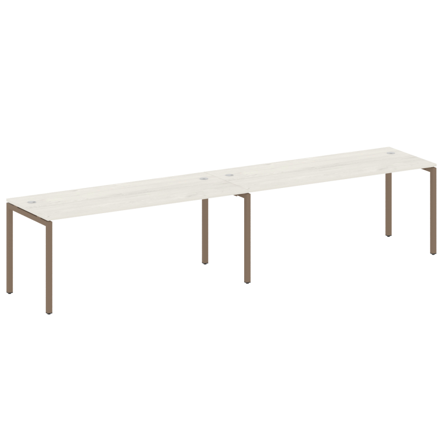Столешницы имеют отверстия с пластиковыми заглушками кабель-канала серого цвета.