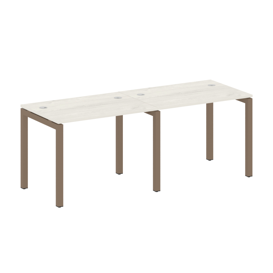 Столешницы имеют отверстия с пластиковыми заглушками кабель-канала серого цвета.
