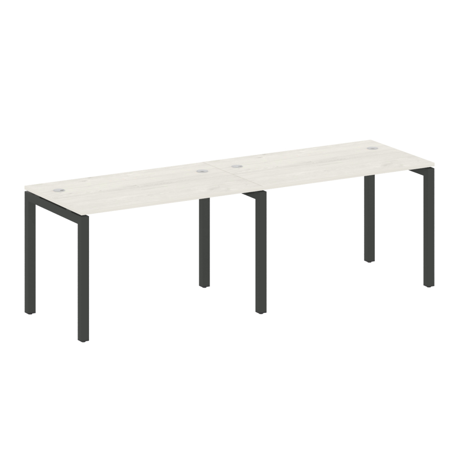 Столешницы имеют отверстия с пластиковыми заглушками кабель-канала серого цвета.