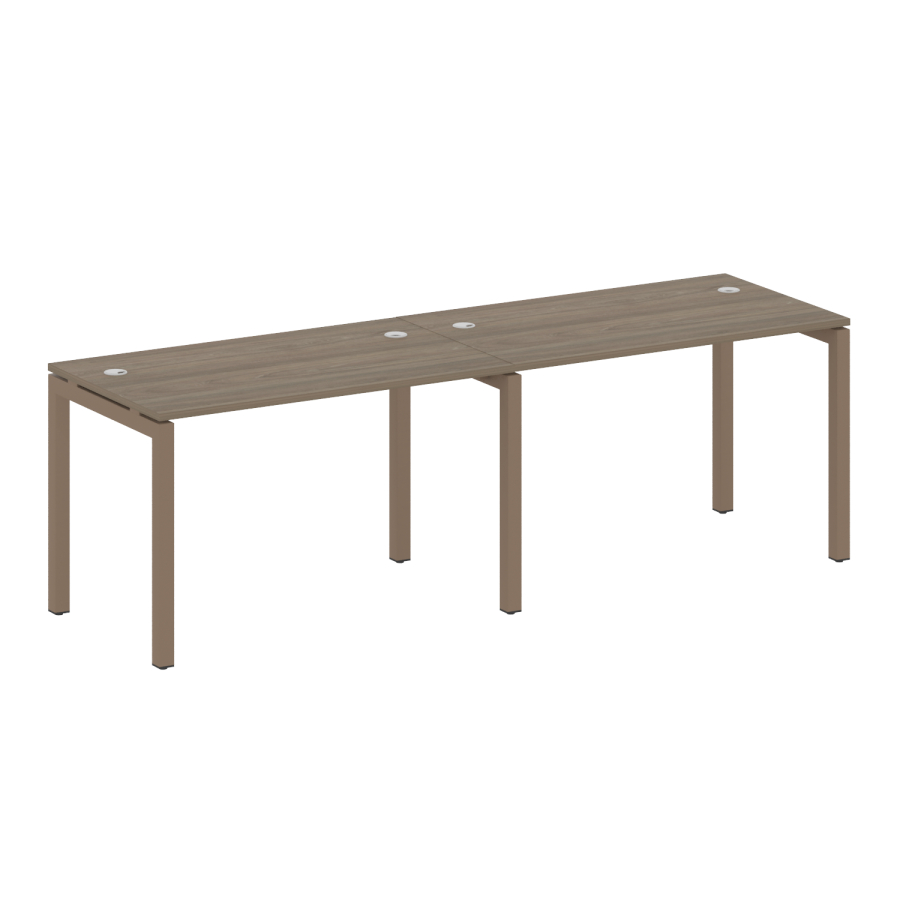 Столешницы имеют отверстия с пластиковыми заглушками кабель-канала серого цвета.