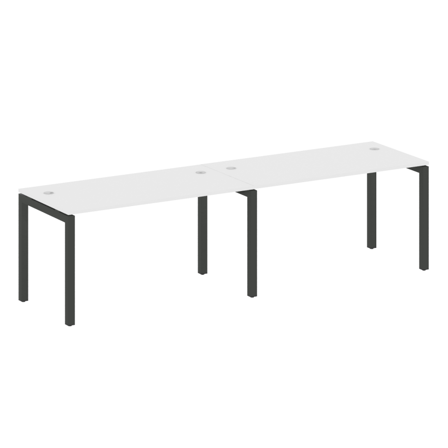 Столешницы имеют отверстия с пластиковыми заглушками кабель-канала серого цвета.