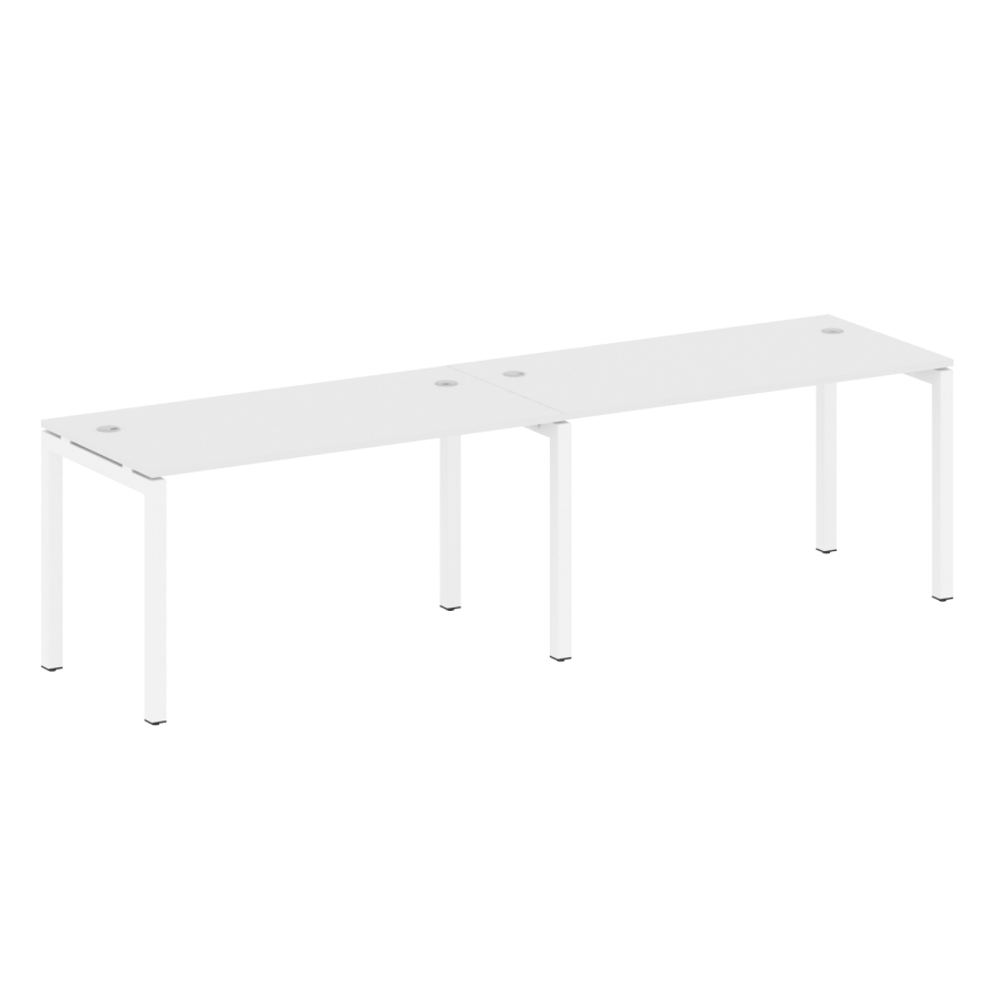 Столешницы имеют отверстия с пластиковыми заглушками кабель-канала серого цвета.
