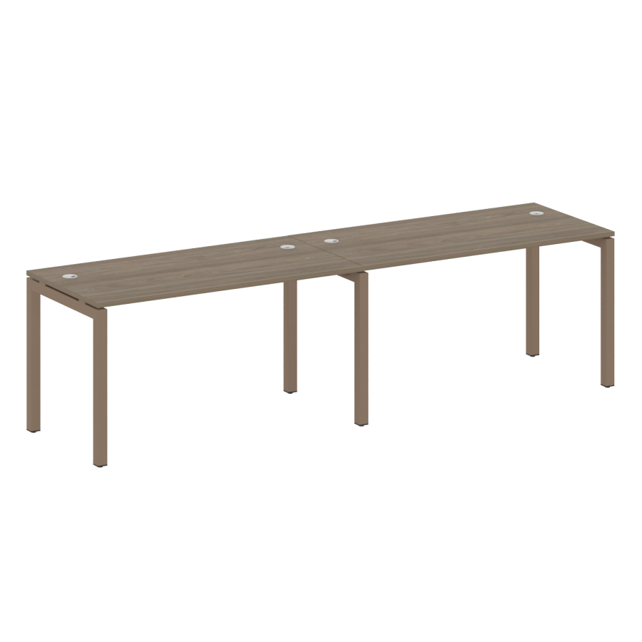 Столешницы имеют отверстия с пластиковыми заглушками кабель-канала серого цвета.