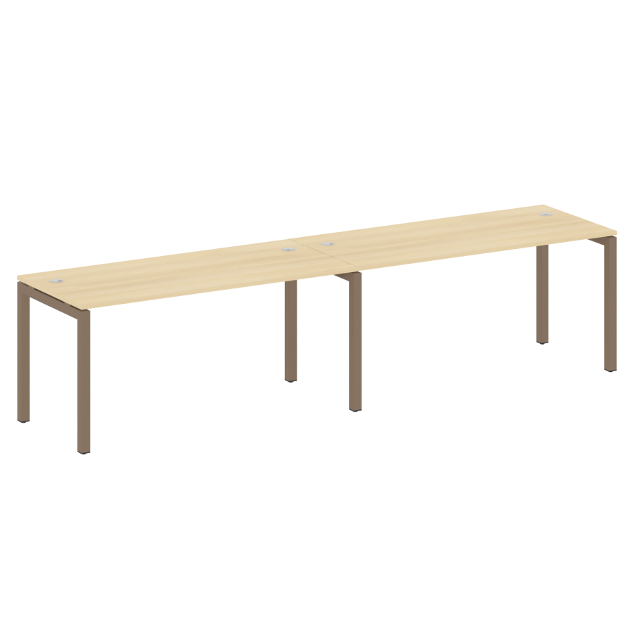 Столешницы имеют отверстия с пластиковыми заглушками кабель-канала серого цвета.