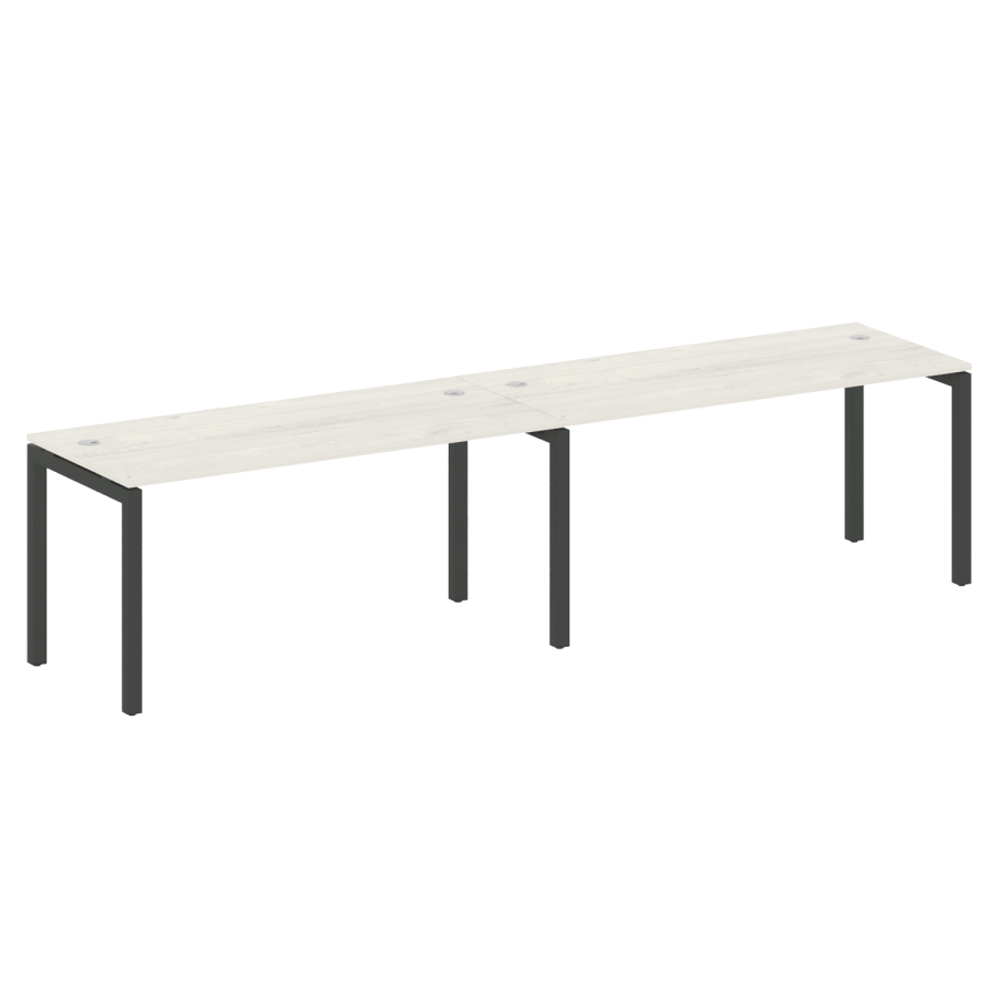 Столешницы имеют отверстия с пластиковыми заглушками кабель-канала серого цвета.