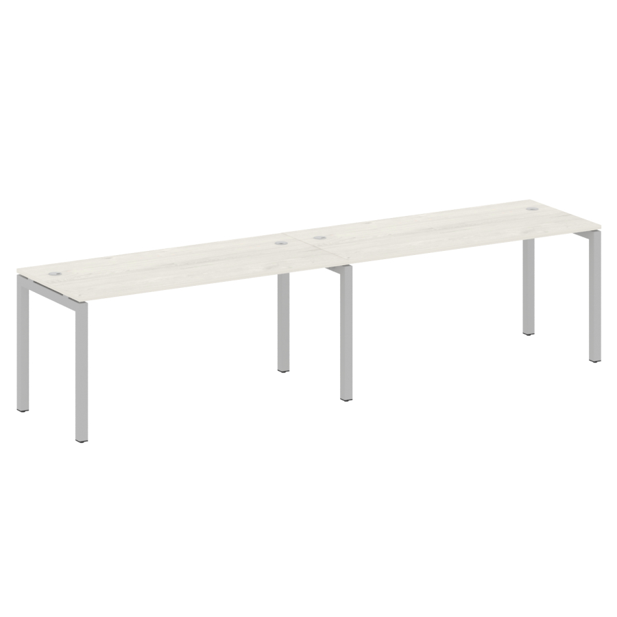 Столешницы имеют отверстия с пластиковыми заглушками кабель-канала серого цвета.