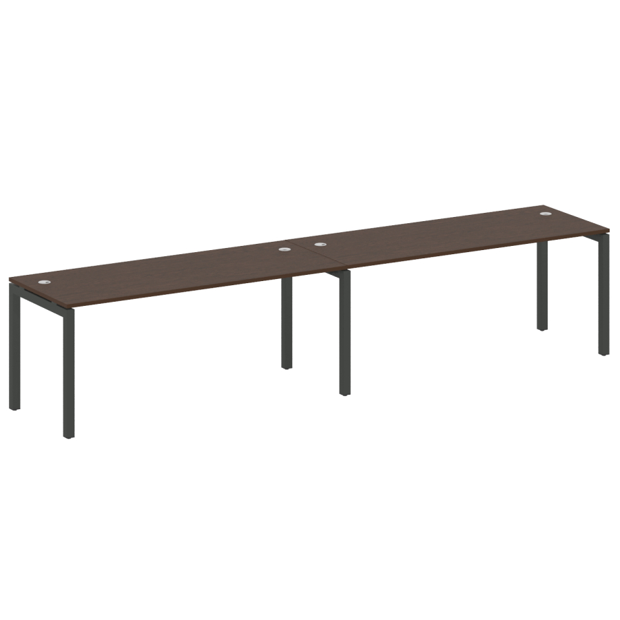 Столешницы имеют отверстия с пластиковыми заглушками кабель-канала серого цвета.
