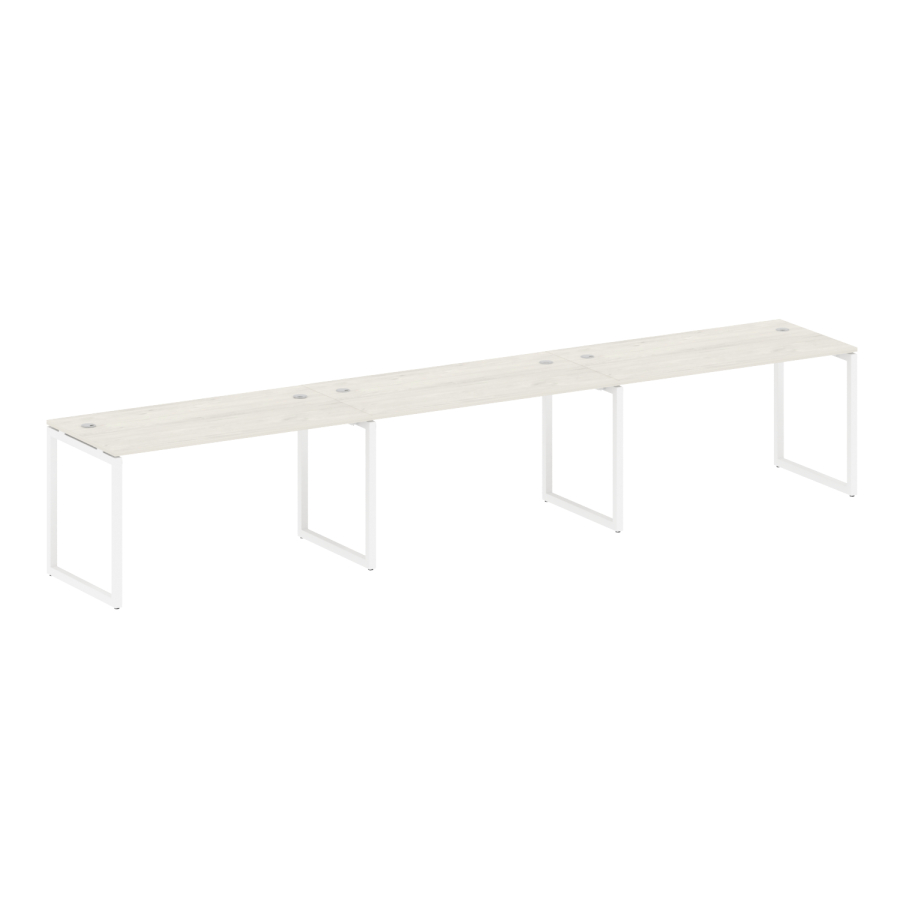 Столешницы имеют отверстия с пластиковыми заглушками кабель-канала серого цвета.