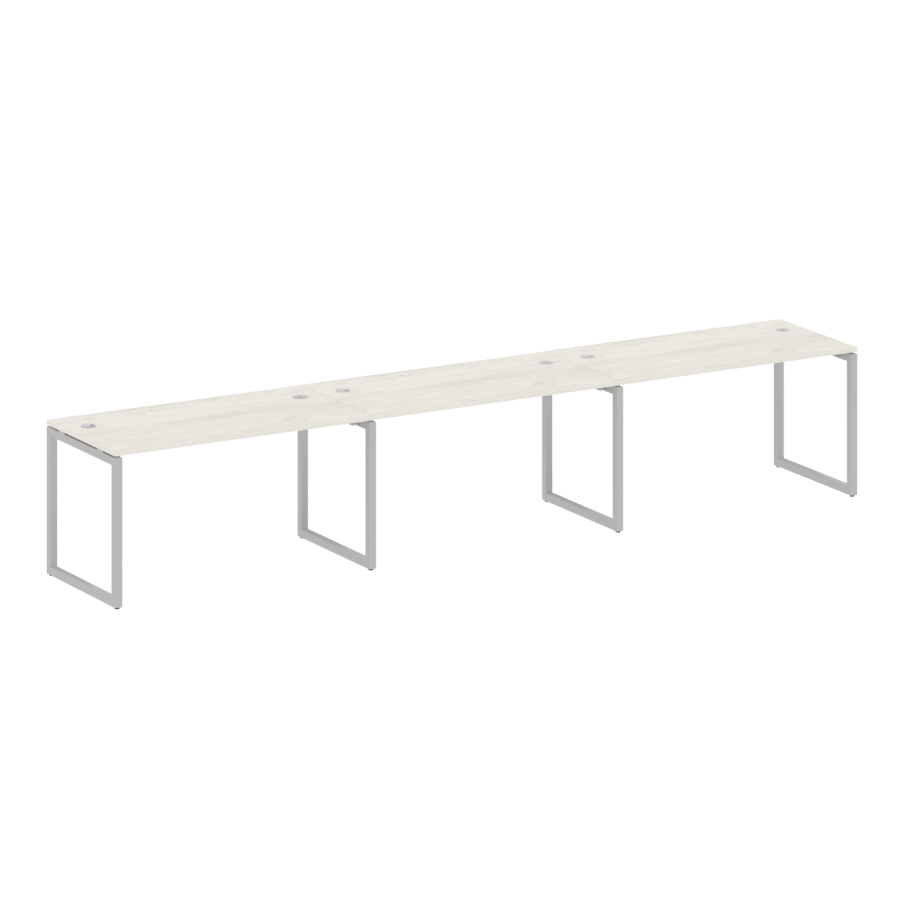 Столешницы имеют отверстия с пластиковыми заглушками кабель-канала серого цвета.