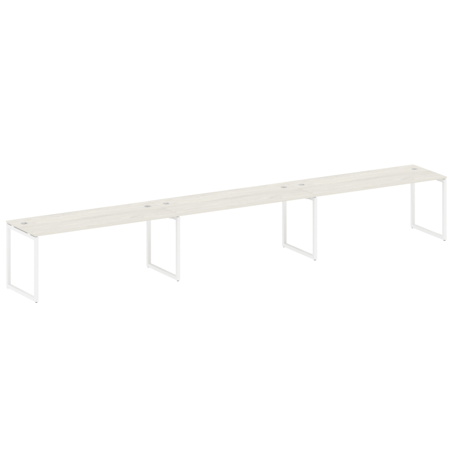 Столешницы имеют отверстия с пластиковыми заглушками кабель-канала серого цвета.
