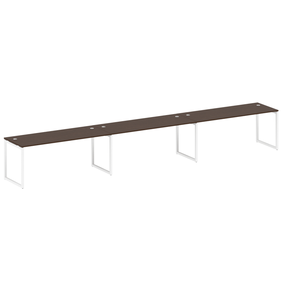 Столешницы имеют отверстия с пластиковыми заглушками кабель-канала серого цвета.