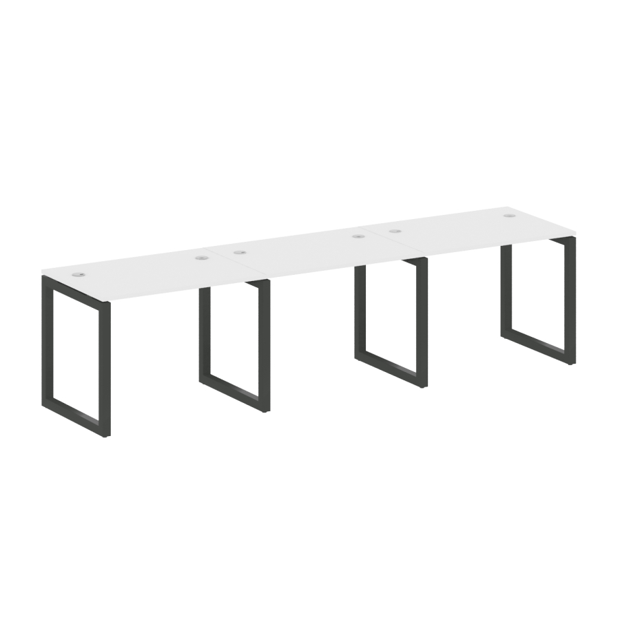 Столешницы имеют отверстия с пластиковыми заглушками кабель-канала серого цвета.