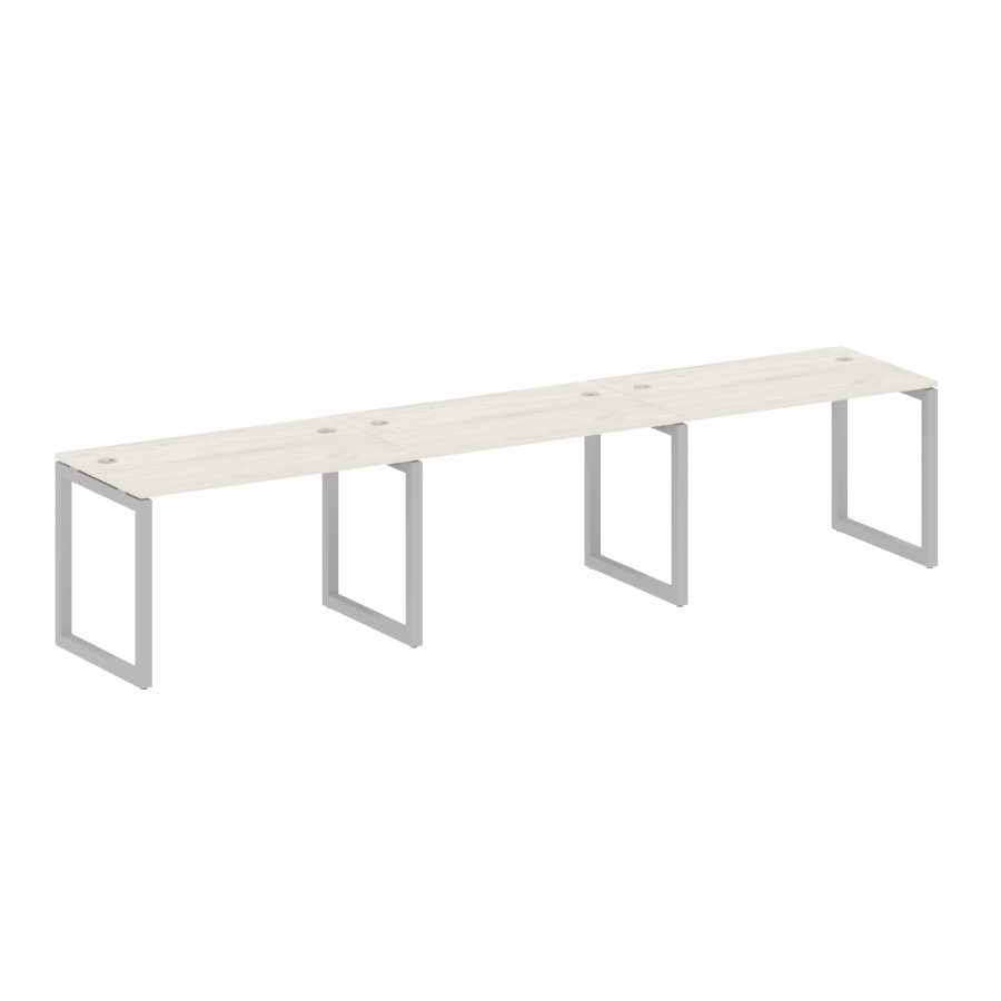 Столешницы имеют отверстия с пластиковыми заглушками кабель-канала серого цвета.