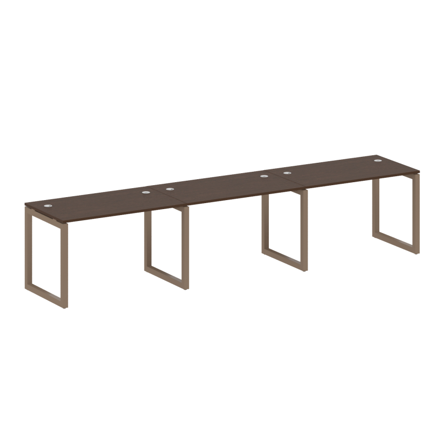 Столешницы имеют отверстия с пластиковыми заглушками кабель-канала серого цвета.