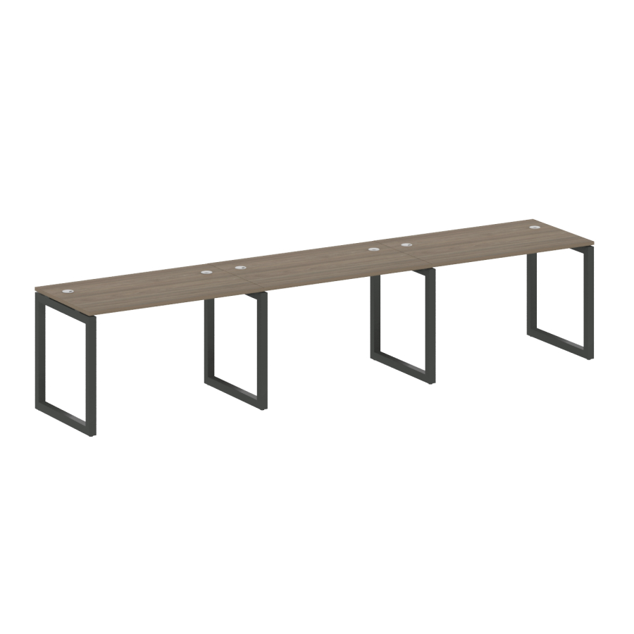 Столешницы имеют отверстия с пластиковыми заглушками кабель-канала серого цвета.