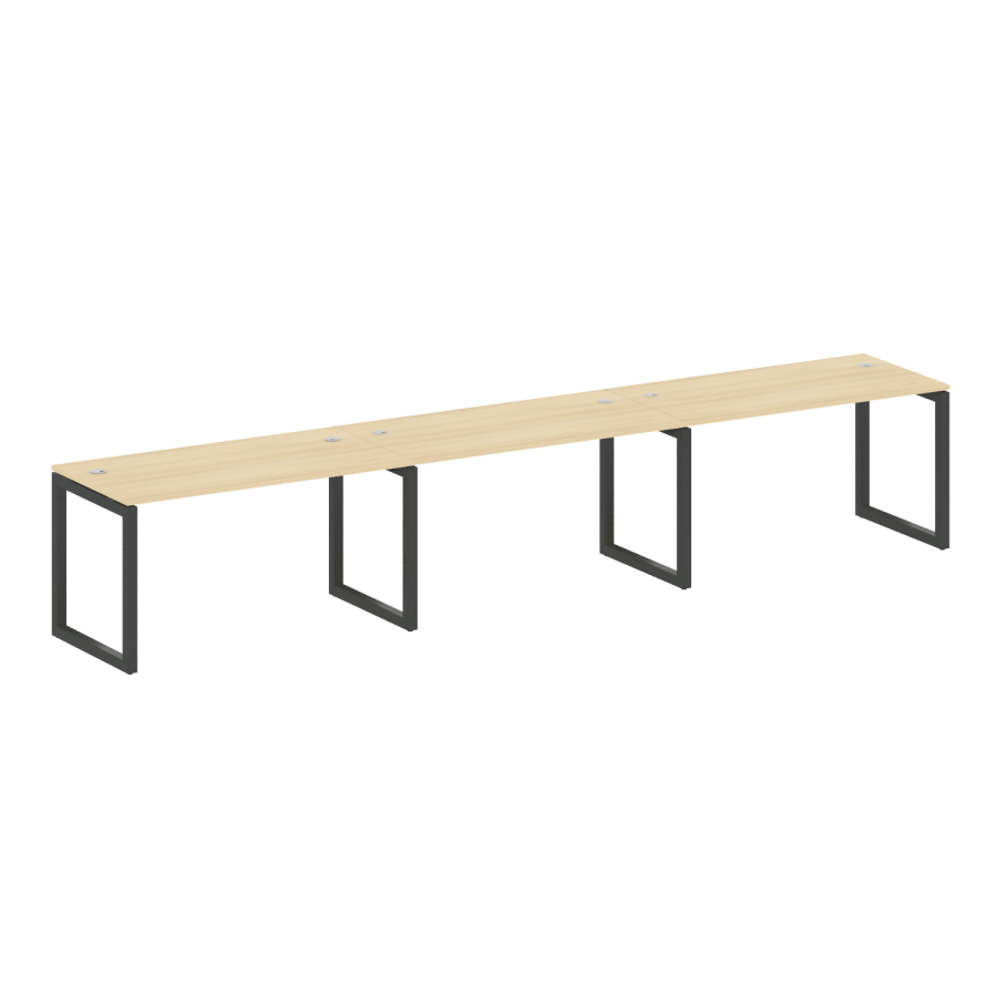 Столешницы имеют отверстия с пластиковыми заглушками кабель-канала серого цвета.