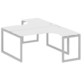 Столешницы имеют отверстия с пластиковыми заглушками кабель-канала серого цвета.