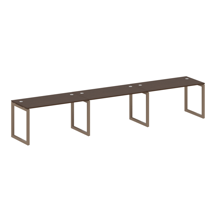 Столешницы имеют отверстия с пластиковыми заглушками кабель-канала серого цвета.