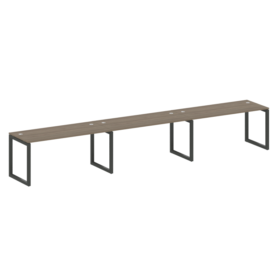 Столешницы имеют отверстия с пластиковыми заглушками кабель-канала серого цвета.