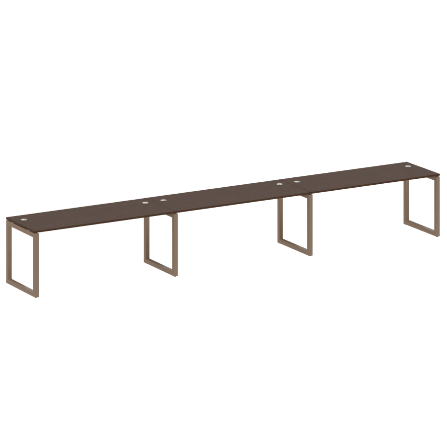 Столешницы имеют отверстия с пластиковыми заглушками кабель-канала серого цвета.