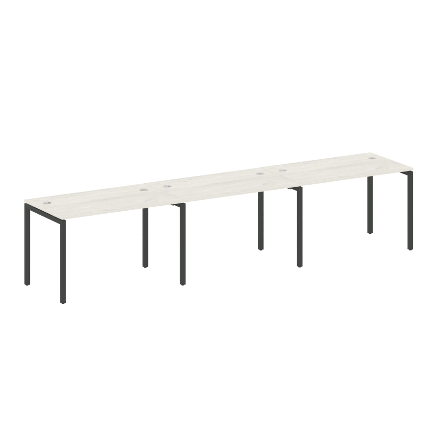 Столешницы имеют отверстия с пластиковыми заглушками кабель-канала серого цвета.